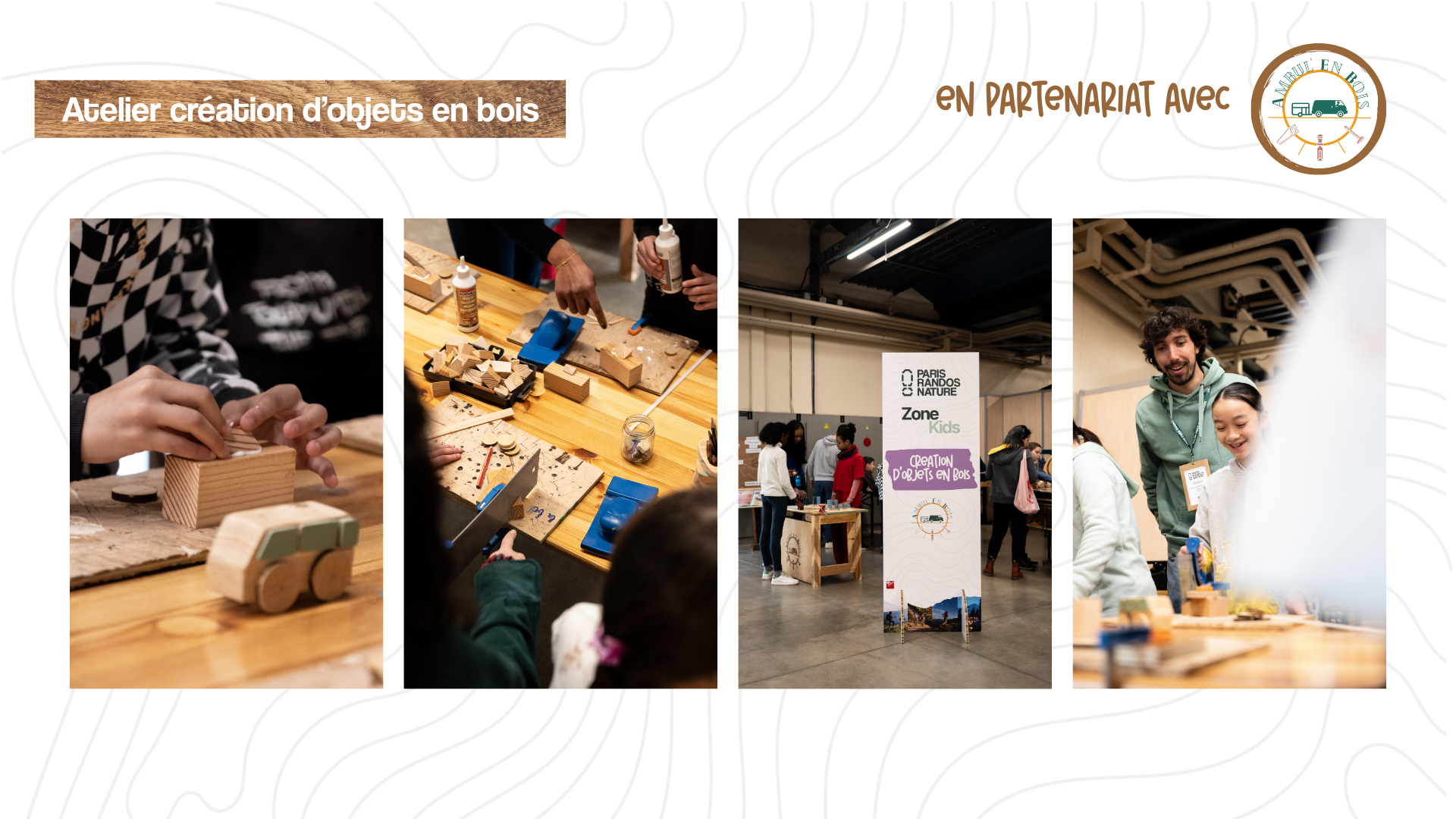 Dans cet atelier, les enfants pourront laisser libre cours à leur créativité en fabriquant des petits objets en bois, comme des porte-clés ou d’autres créations ludiques. Organisé en partenariat avec la marque Ambul’En Bois, cet atelier permet aux jeunes participants de découvrir le travail du bois de manière écologique, tout en passant un moment amusant et enrichissant. Et pour prolonger le plaisir, ils pourront ramener leurs créations chez eux et les partager avec leur famille !