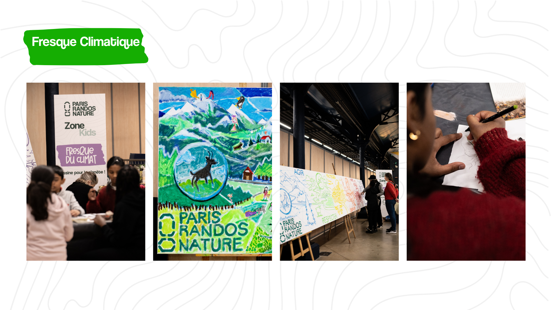 Dans la Zone Kids, les enfants seront invités à participer à une gigantesque fresque collaborative qui mettra à l'honneur le climat. Les créatifs en herbes pourront développer leur sens de l'art entre dessins, couleurs, imagination… mais aussi réflexion sur la nature, avec les paysages, les animaux et tout ce qui compose la planète qu’ils veulent protéger.