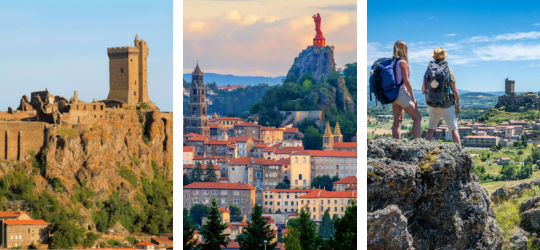 Marchez entre plateaux volcaniques et villages de pierre, et découvrez une Haute-Loire façonnée par le volcanisme et l’histoire. Au fil du sentier, les panoramas s’ouvrent sur le bassin du Puy-en-Velay et la forteresse de Polignac.